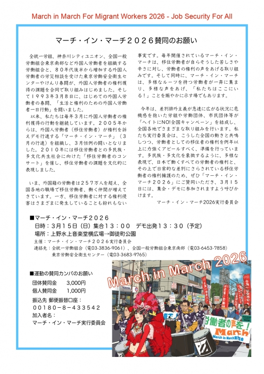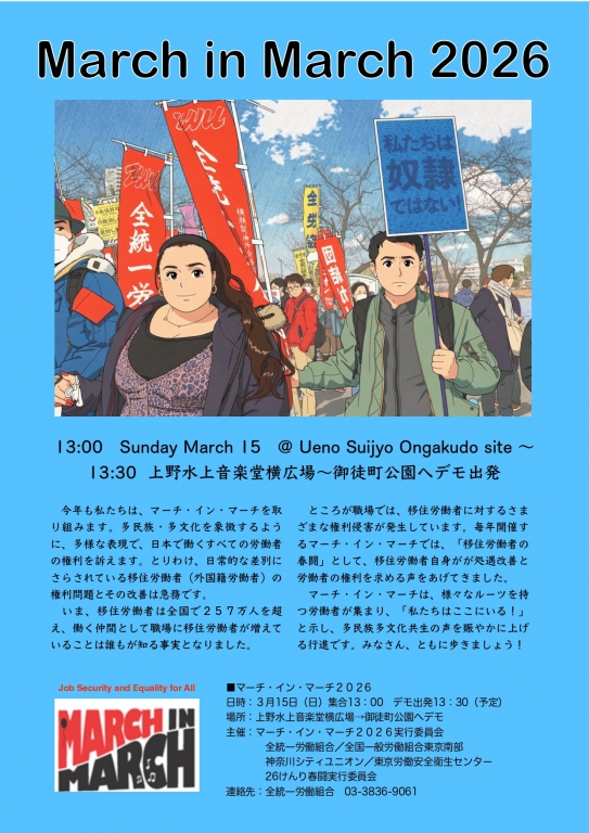 今年も移住労働者の春闘「マーチインマーチ2026」を開催いたします。